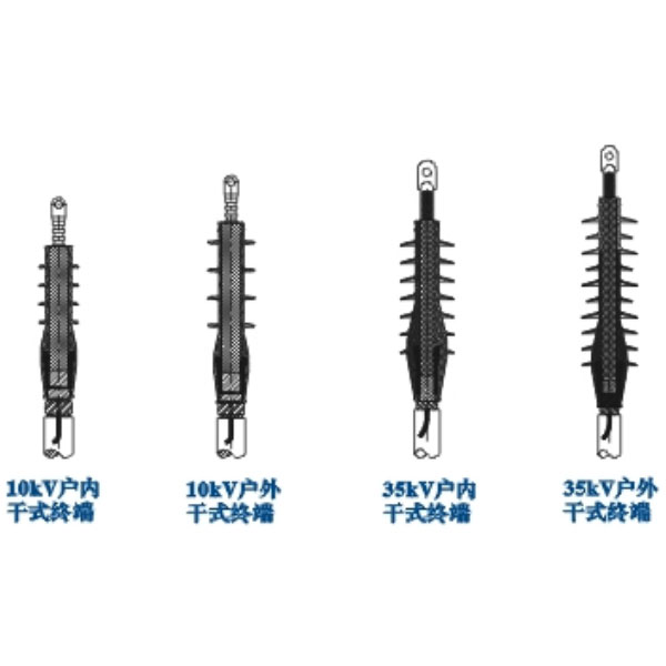 千式终端适用于35kV及以下电力电缆的连接。干式终端分为户内型和户外型。户内型用于连接电缆到空气绝缘开关变压器等设备,户外型用于连接电缆到架空线和其他户外设备。产品性能满足GB/T12706.4和IEC60502标准要求。